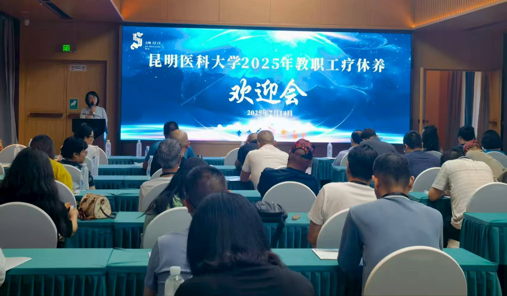 7月14日晚,疗休养活动欢迎会在酒店会议室进行,基地工作人员先对基地基本情况及本次疗休养活动的行程安排进行介绍,其次学校工会主席施丕华同志对本次活动要求及活动纪律进行强调。