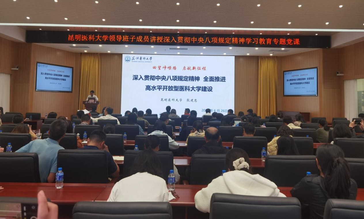 2025年6月26日下午,学校党委常委、副校长殷建忠在图书馆四楼报告厅为药学院师生讲授主题党课。药学院党政领导班子成员、师生党员、党外人士、共青团员代表参加本次党课学习。