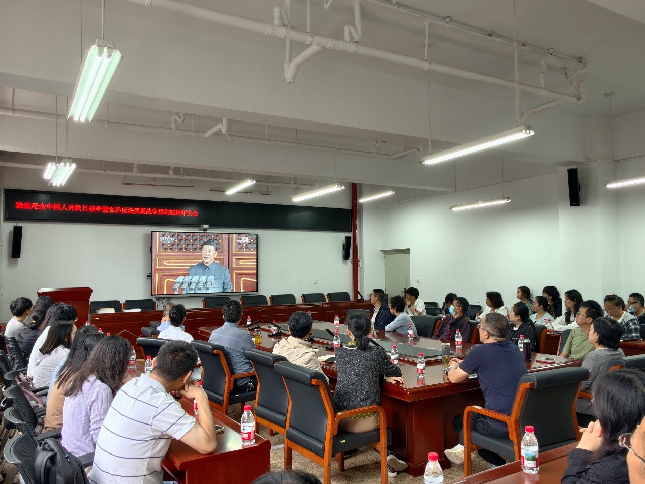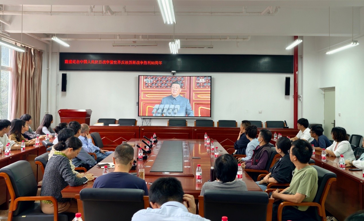 9月3日上午,纪念中国人民抗日战争暨世界反法西斯战争胜利80周年大会在北京天安门广场隆重举行。药学院组织师生在204会议室集中观看大会直播,铭记历史、缅怀先烈,共同见证强国力量。
