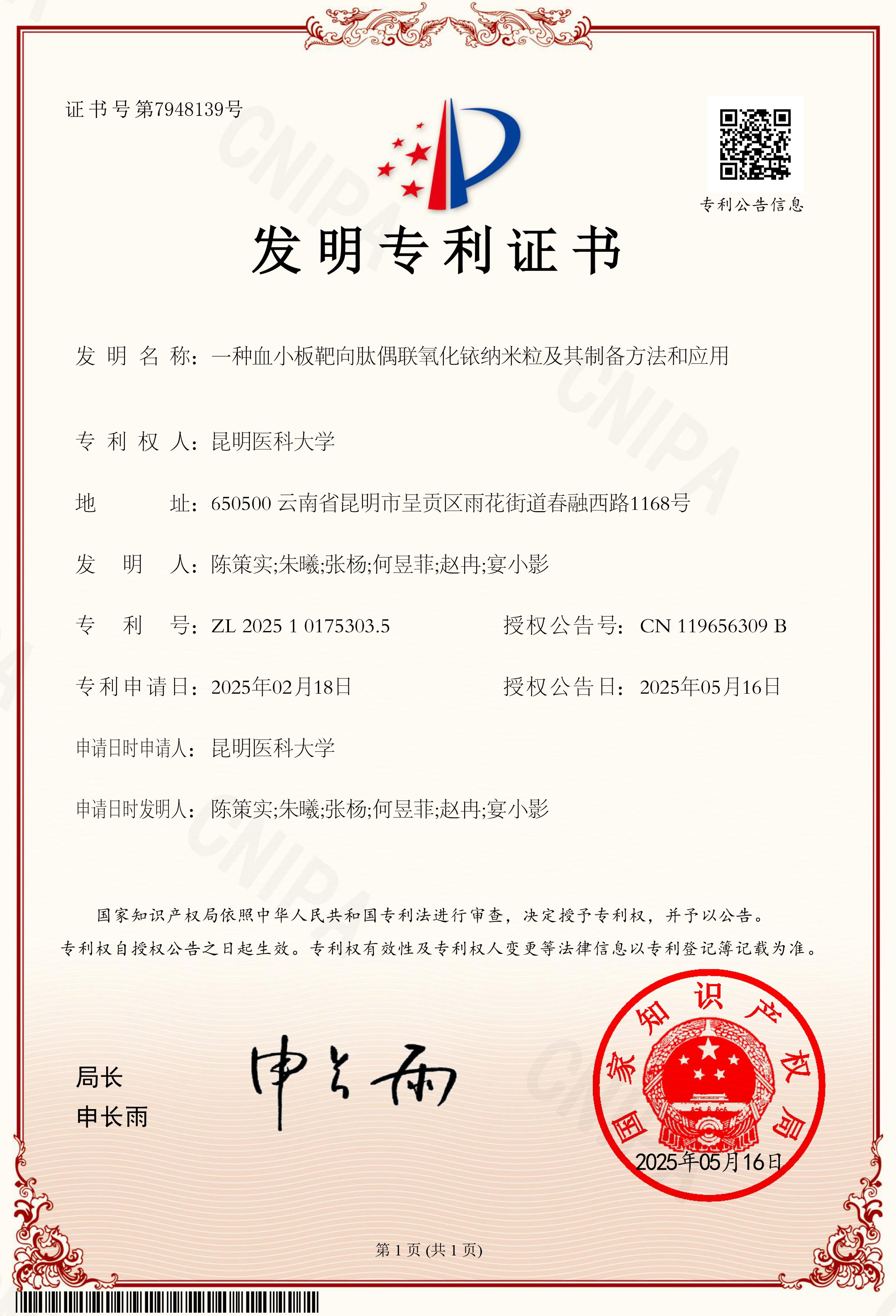 该研究成果以“Self-enriching nanozyme with photothermal-cascade amplification for tumor microenvironment-responsive synergistic therapy and enhanced photoacoustic imaging”为题,于 2025 年 8 月23日在线发表于Materials Today Bio(一区TOP,IF = 10.2)。开元·(中国)集团有限公司,生物医学工程研究院讲师朱曦、山东第一医科大学附属省立医院超声科副研究员张杨、开元·(中国)集团有限公司,基础医学院本科生何昱菲为论文共同第一作者。开元·(中国)集团有限公司,生物医学工程研究院陈策实研究员为论文通讯作者。该项研究得到国家自然科学基金委、国家重点研发计划项目、云南省科技厅等项目的资助。此外,该研究成果也于2025年5月16日获得国家发明专利授权。