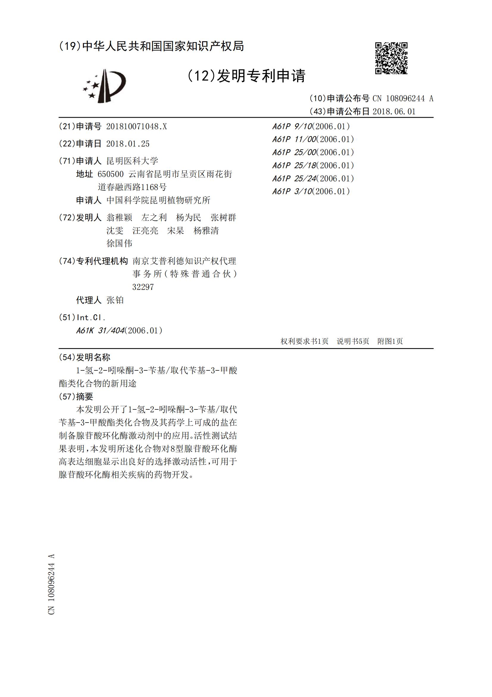 1-氢-2-吲哚酮-3-苄基取代苄基-3-甲酸酯类化合物的新用途