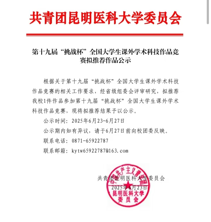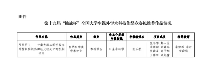 第十九届“挑战杯”全国大学生课外学术科技作品竞 赛拟推荐作品公示